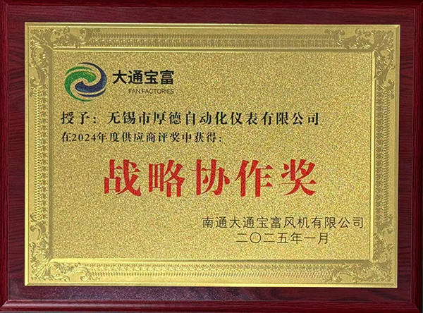 精诚协作,共赴辉煌:厚德仪表荣获南通大通宝富风机有限公司战略协作奖