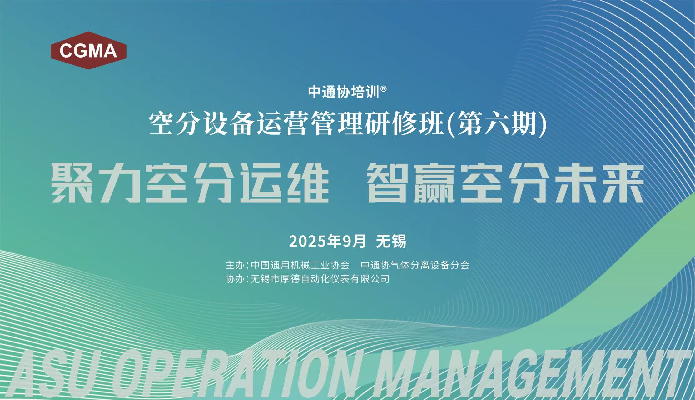 2025年9月23-26日,中国通用机械工业协会、中通协气体分离设备分会主办,无锡市厚德自动化仪表有限公司协办的第六期空分设备运营管理研修班在无锡成功举办!