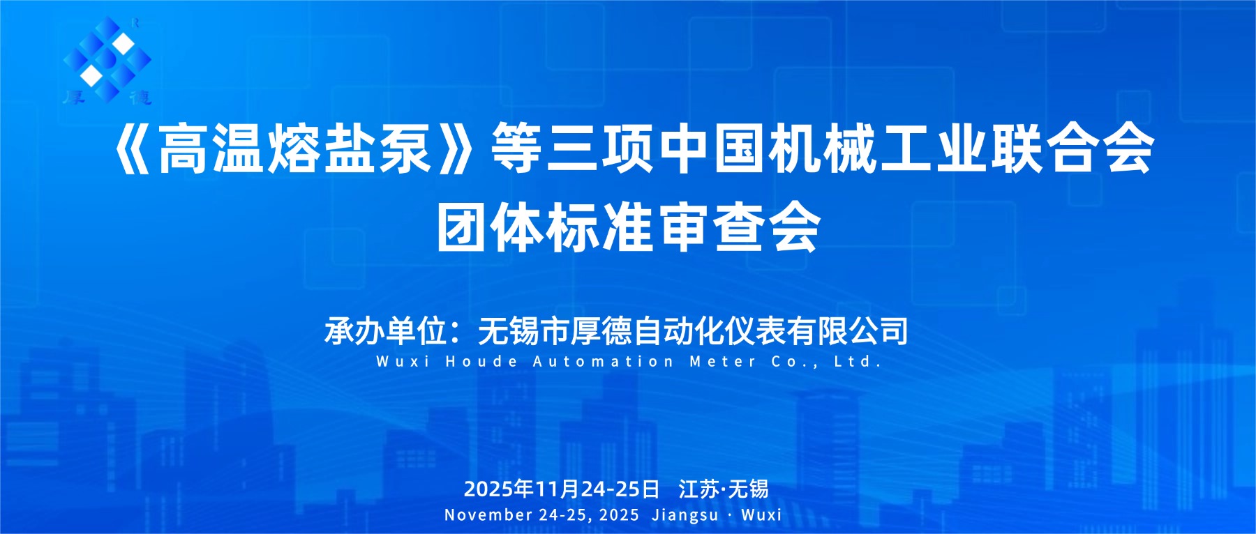 2025年11月24-25日,由中国机械工业联合会主办、无锡市厚德自动化仪表有限公司承办的《高温熔盐泵》等三项中国机械工业联合会团体标准审查会在无锡顺利召开