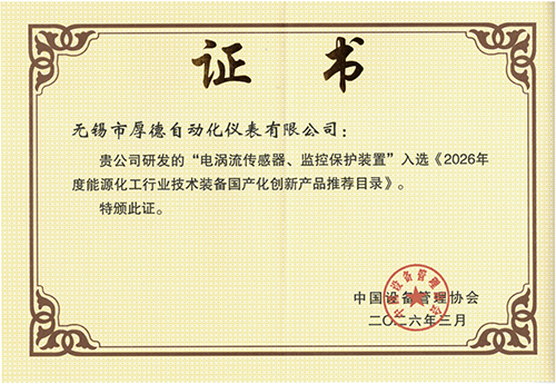 本次入选创新产品推荐目录的电涡流传感器与监控保护装置,完全由厚德自主研发、自主生产,核心部件实现国产化,性能指标达到国际先进水平,已在多家石化、煤化工、新能源企业成功应用,实现了对进口产品的可靠替代,为用户大幅降低了采购成本和维护周期。